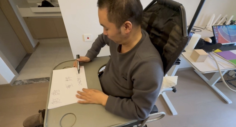 一年前,作为上海首例脑机接口临床试验受试者,38岁的小董在华山医院接受了脑机接口植入手术。经过术后一年的康复训练,小董原本无法抓握的双手,不仅可以捏起小钢珠、小药片,还能握笔写字。更可喜的是,脑机接口正在让他全身神经悄无声息地慢慢恢复,曾经大小便失禁的他,如今已可较为规律地自主排便,甚至腰腿部有了一些虫爬的刺痒感。