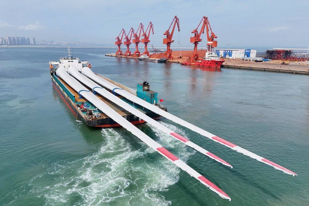 2025年8月1日,超大尺寸海上风电叶片从山东港口烟台港蓬莱港区起运(无人机照片)。新华社发(唐克 摄)企业需担当创新主体,打造“产学研协同+人才储备”双轮驱动模式。一方面,企业应联合科研机构、高校建立产学研用协同创新机制,推动实验室技术快速转化为产业成果,缩短技术落地周期;另一方面,企业与高校合作开展定向培养,高技术产业从业人员规模稳步增长,为持续创新提供人力支撑。