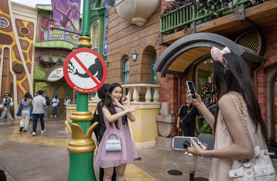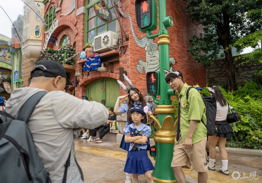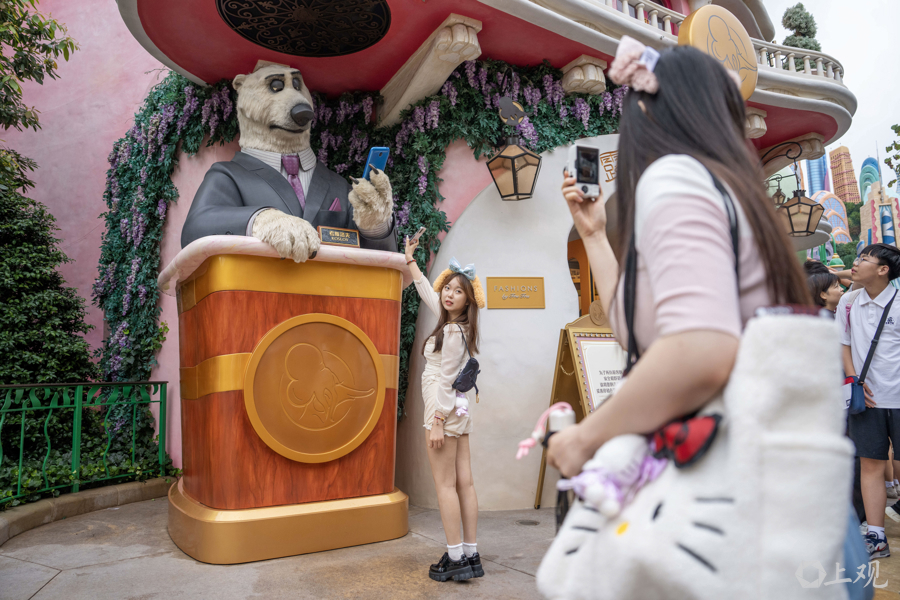 上海迪士尼作为全球唯一“疯狂动物城”主题园区,园区内根据动漫主题的沉浸造景吸引了不少游客互动。