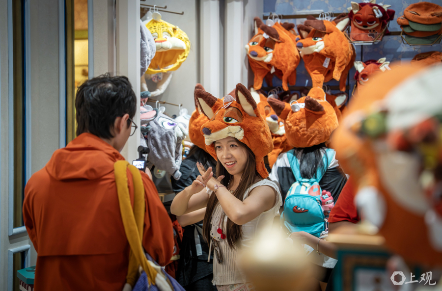 在乐园商店内,“疯狂动物城”主题饰品吸引了不少游客选购。