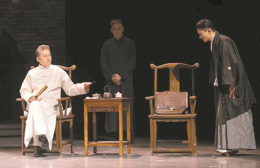 佟瑞敏(左一)在原创话剧《点翠》中饰演京剧名伶方玉珩。(演出方供图)