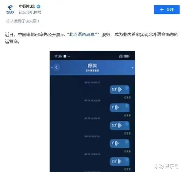 10 月 30 日,中国电信宣布率先公开展示「北斗语音消息」服务,成为业内首家实现北斗语音消息的运营商。